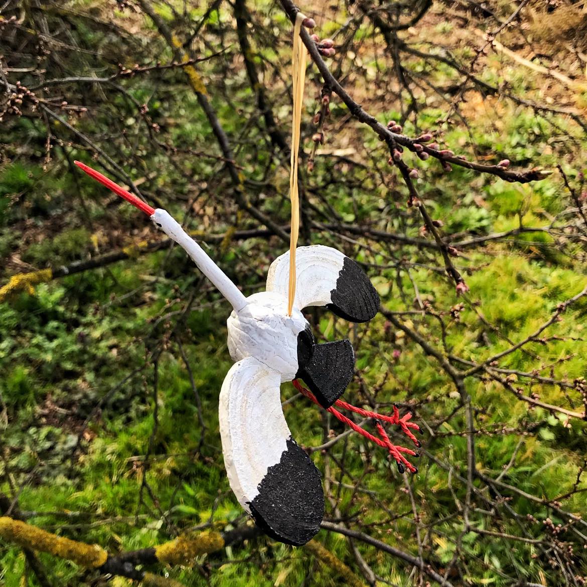 Minimalistyczny bocian to doskonała ozdoba wnętrza a także śwetny pomysł na prezent na przykład z okazji urodzin dziecka. Bocian jest wykonany z orzecha włoskiego oraz drewna. Nóżki zostały wzmocnione drucikiem, dzięki czemu można je modelować w dowolny sposób. Każdy egzemplarz wyposażony jest w sznureczek, dzięki czemu można powiesić go w dowolnej przestrzeni.
