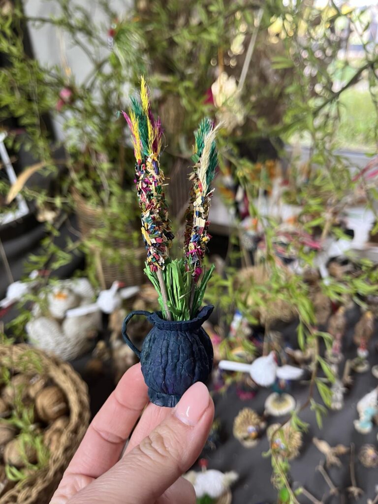 Wazonik z łupiny orzecha włoskiego z palemkami