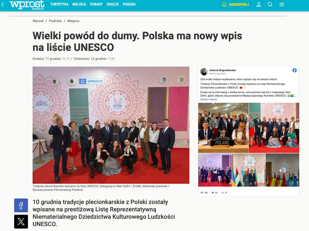 10 grudnia tradycje plecionkarskie z Polski zostały wpisane na prestiżową Listę Reprezentatywną Niematerialnego Dziedzictwa Kulturowego Ludzkości UNESCO.
